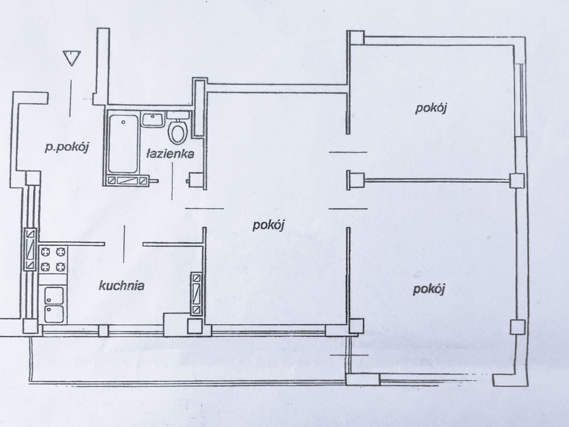 Mieszkanie o powierzchni 54 m2 składa się z 3 pokoi oraz kuchni . Mieszkania posiada też balkon typu loggia oraz piwnicę