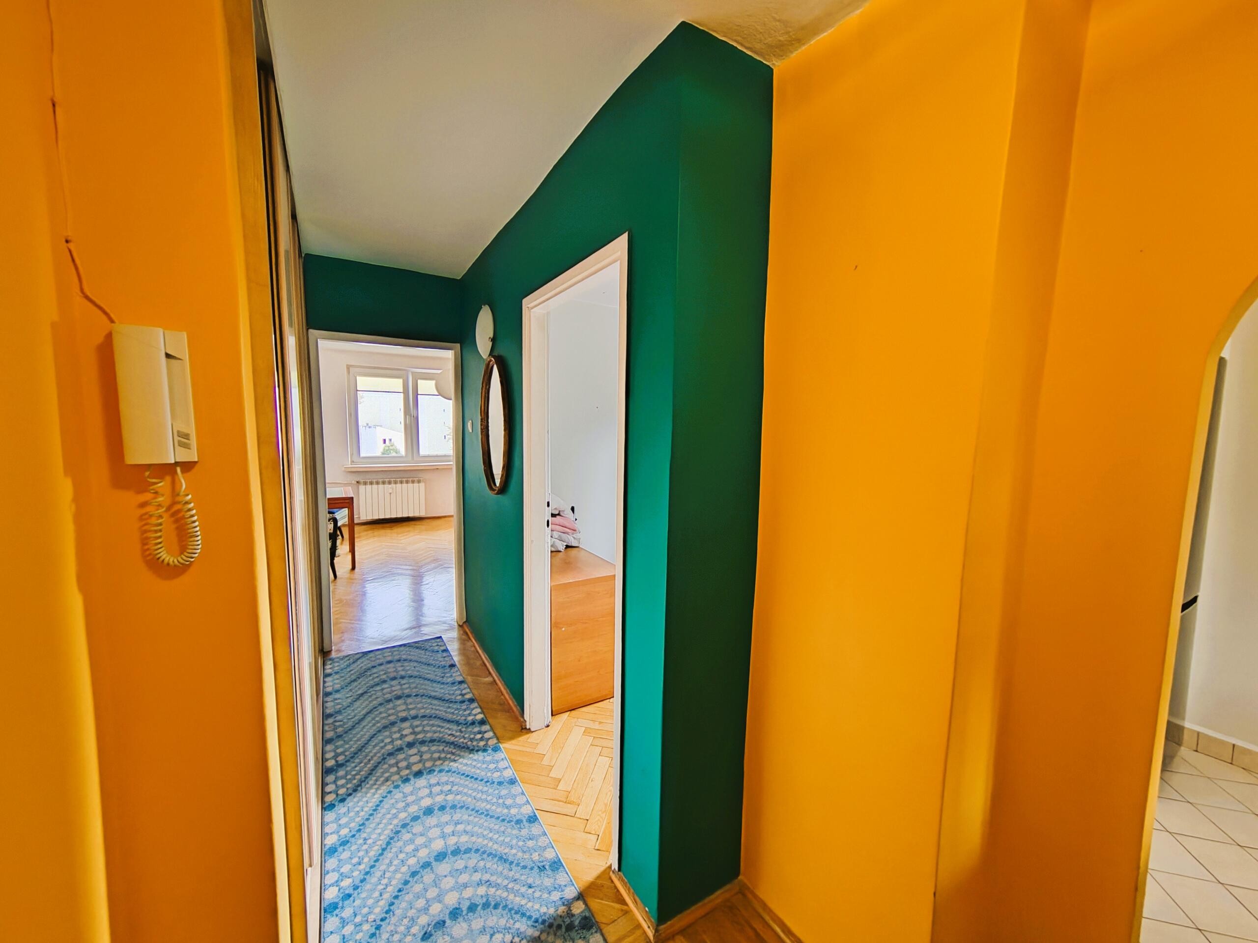 Mieszkanie o powierzchni 41 m2 posiada 2 oddzielne pokoje i mieści się na 4 piętrze 9 piętrowego budynku.