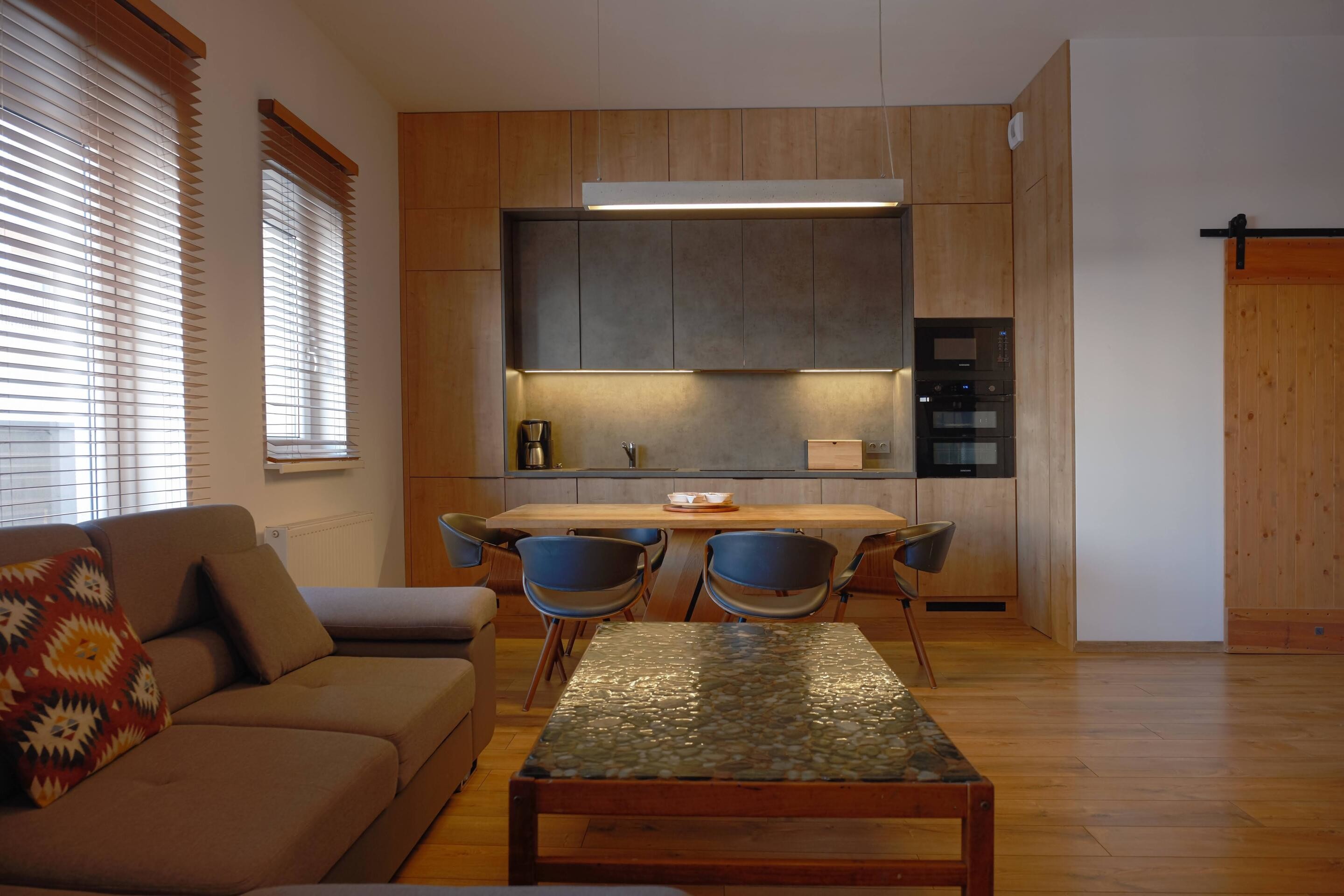 - kuchni - w pełni wyposażona ( meble, zmywarka, piekarnik, lodówka, płyta indukcyjna itd )