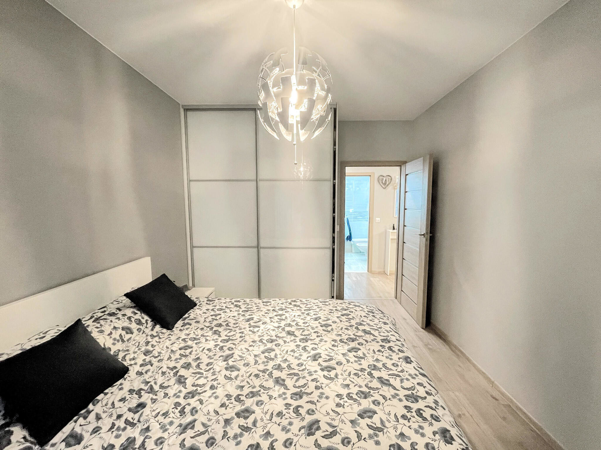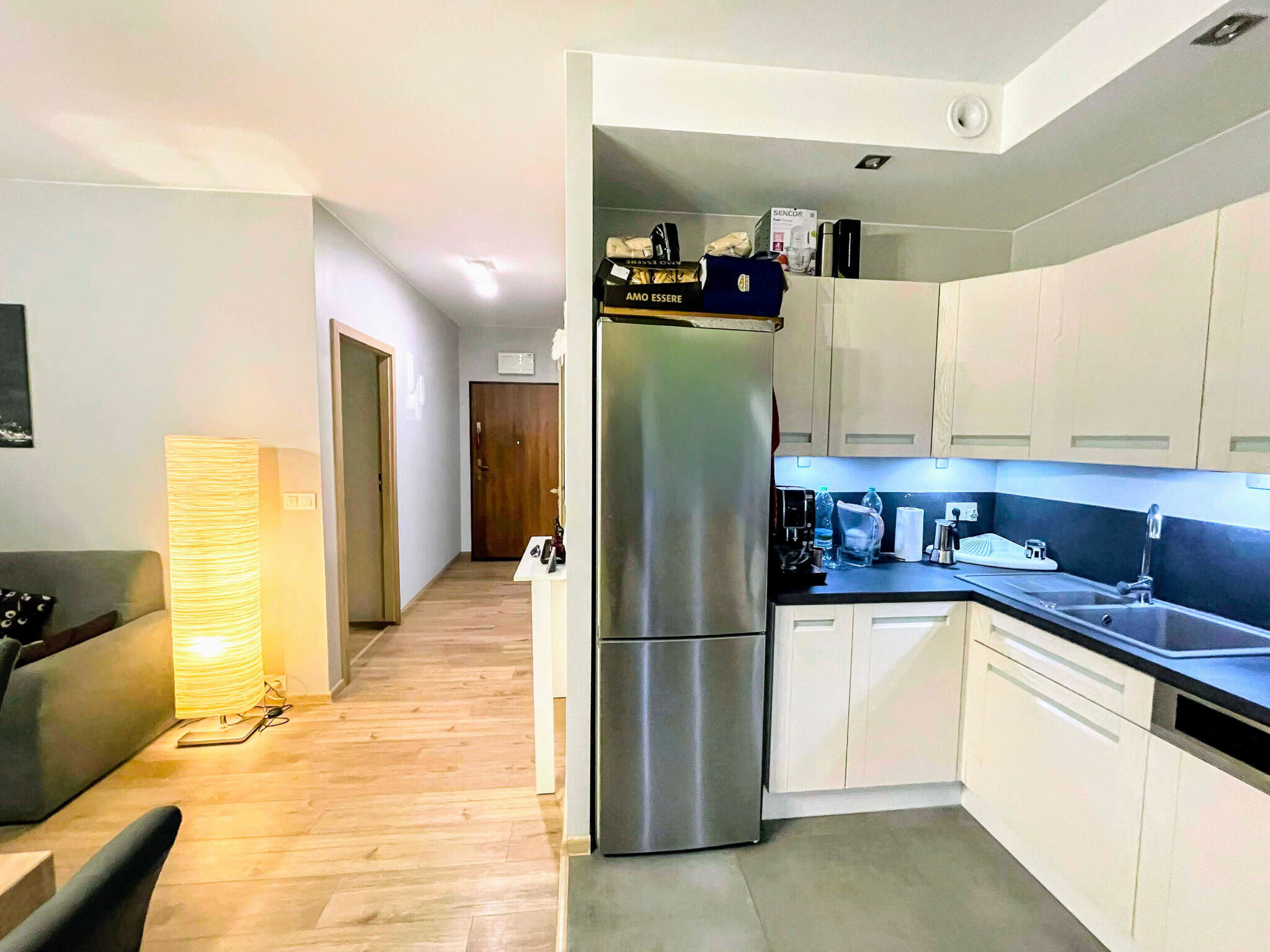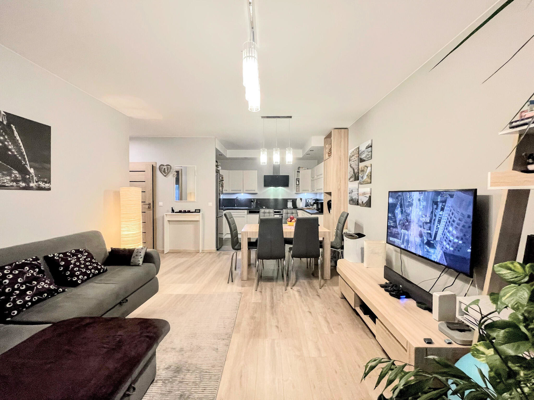 - na podłogach panele oraz płytki