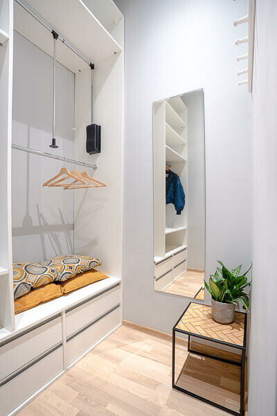 - hallu (pojemna szafa w zabudowie zapewniająca maksymalizację miejsca).