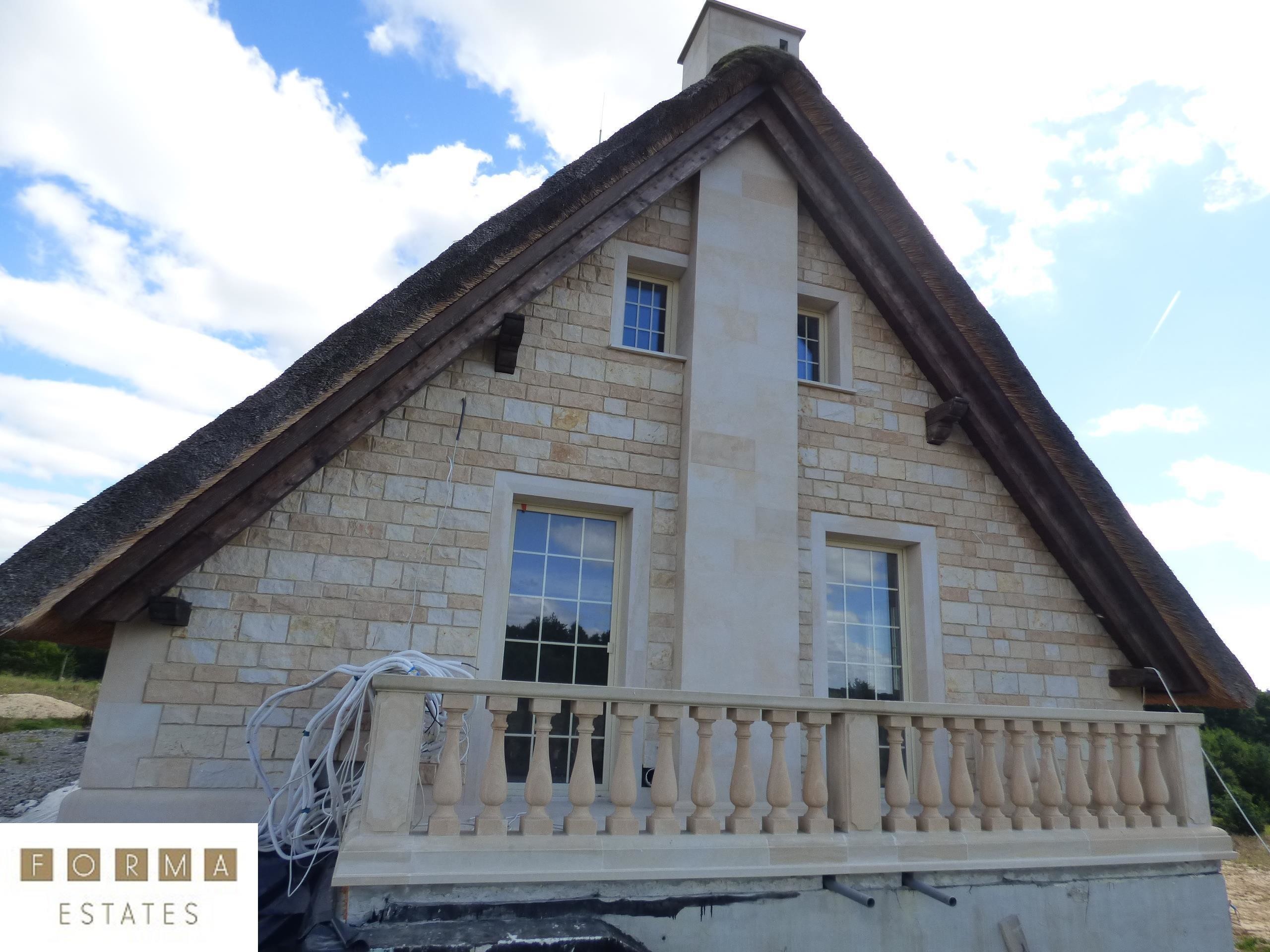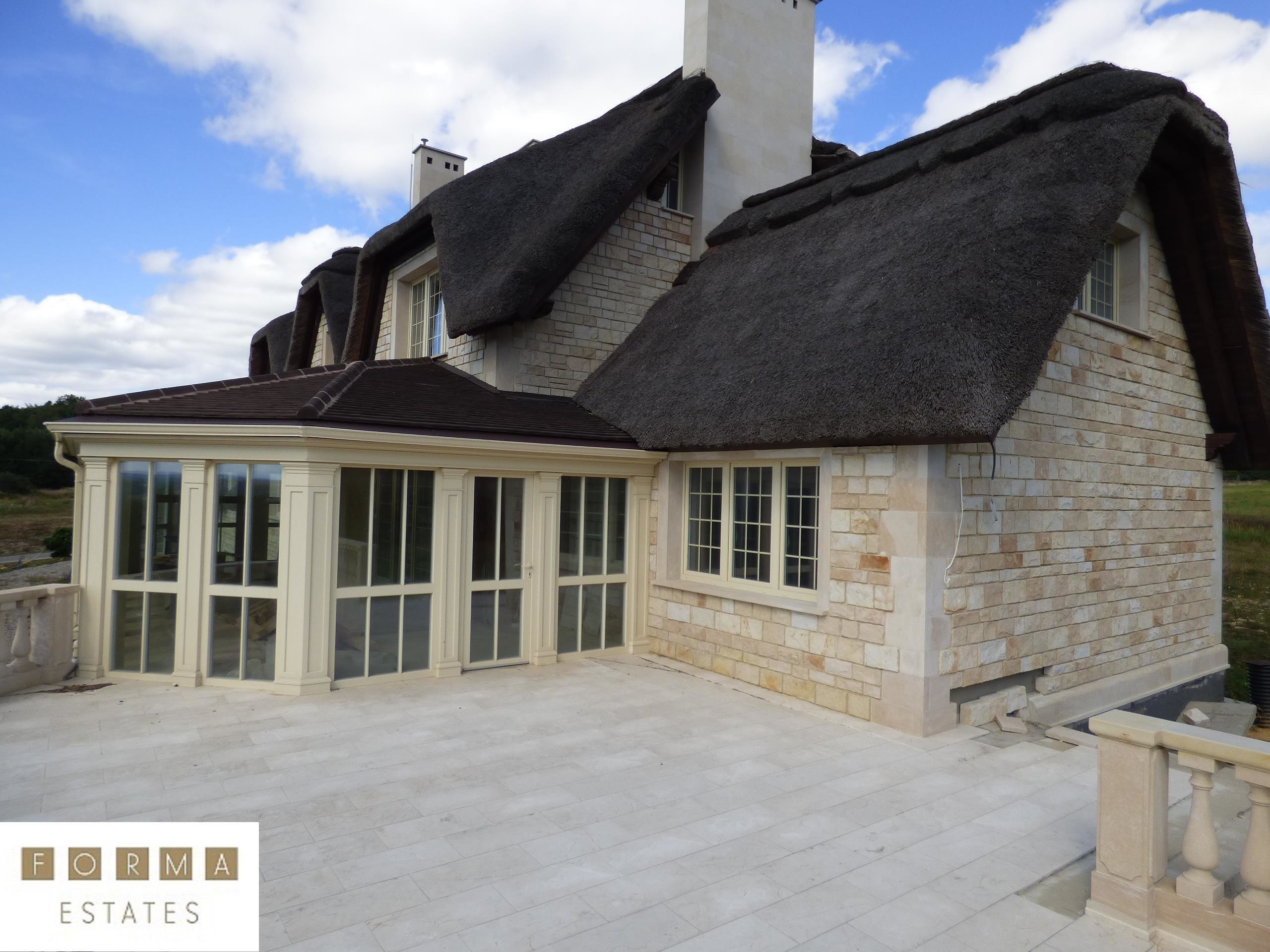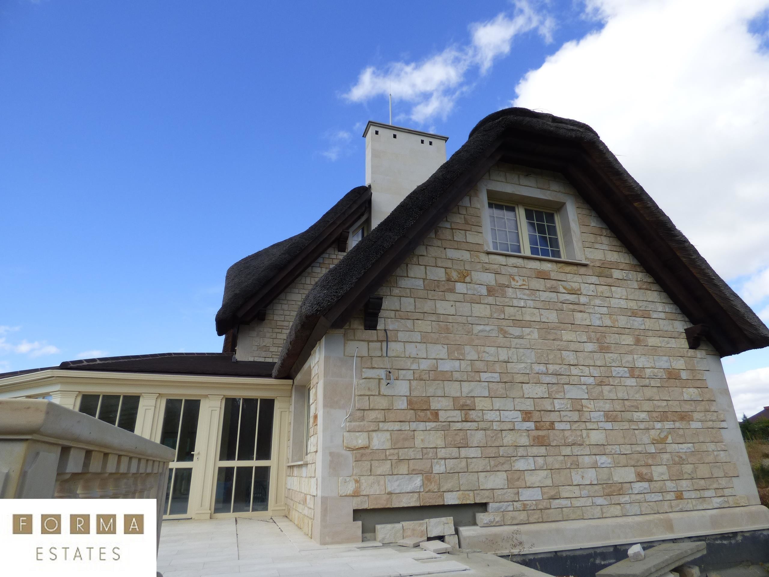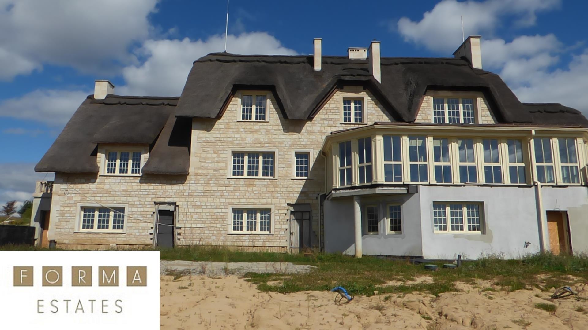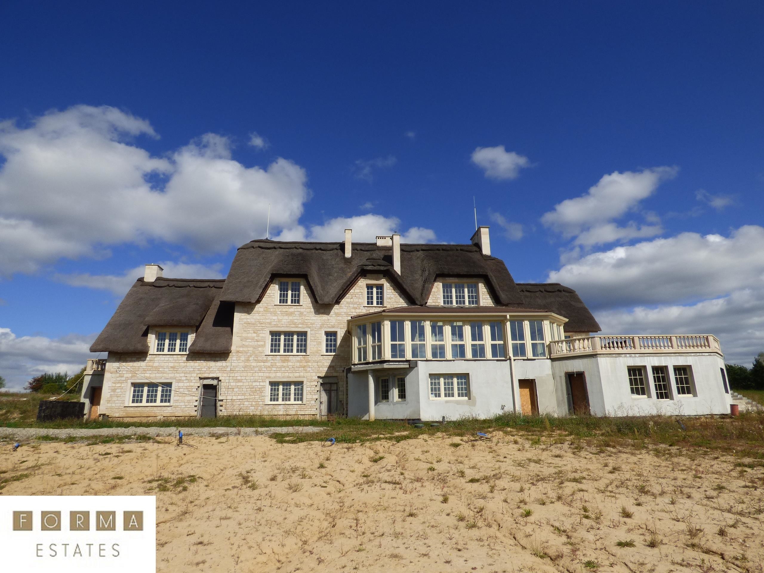 Nieruchomość powstała z materiałów najwyższej jakości. Budynek stworzono z pustaka ceramicznego, ściany obłożono bloczkami z piaskowca, dach został pokryty prawdziwą strzechą na wzór angielskiego budownictwa. Rezydencja wyróżnia się oryginalnością w porównaniu do innych projektów budowlanych. Dojazd do budynku drogą asfaltową. Ogrodzenie oraz brama elektryczna zabezpieczająca nieruchomość.