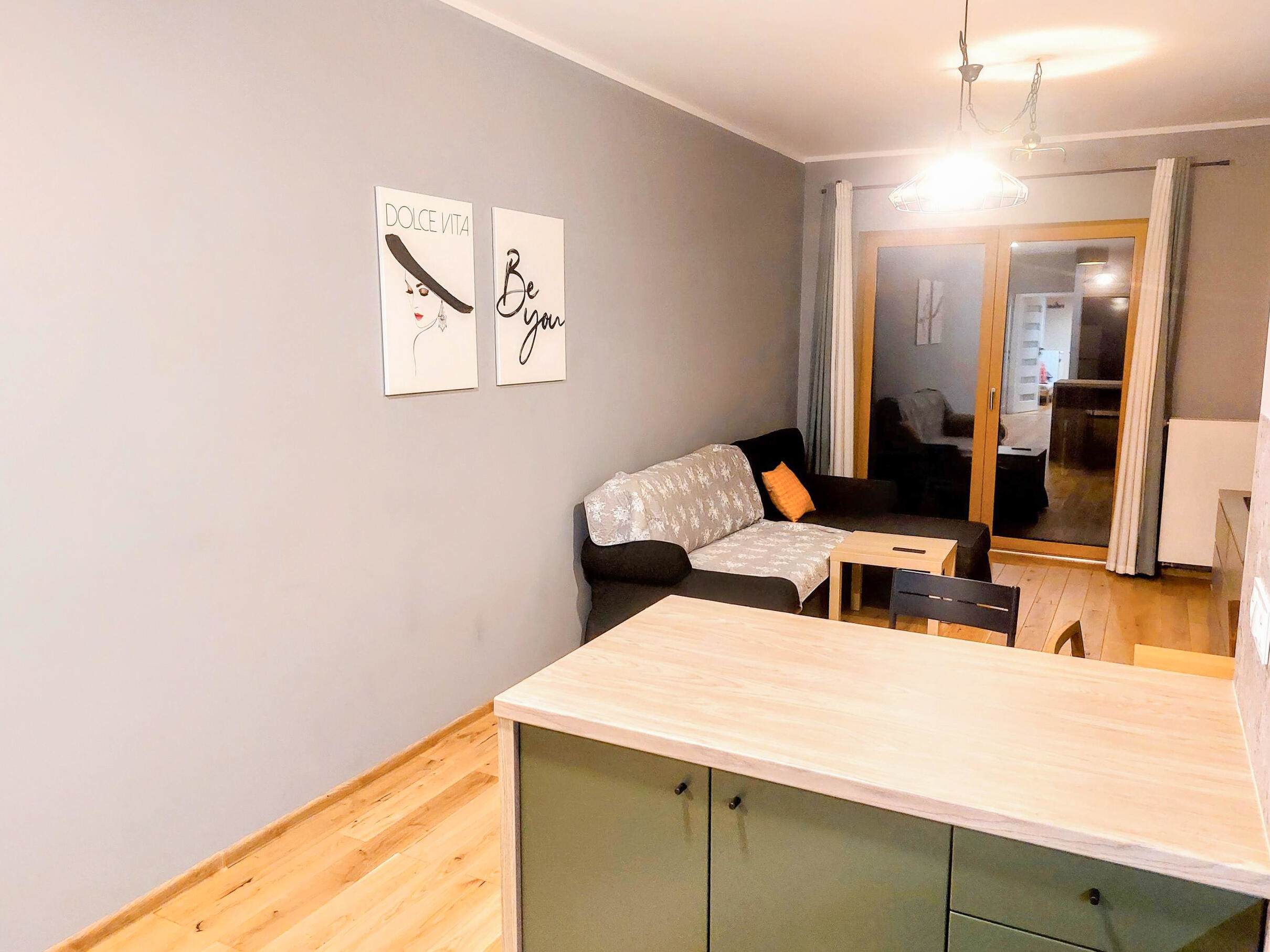 - salon: wygodna kanapa z funkcjonalnym stolikiem oraz nowoczesne oświetlenie